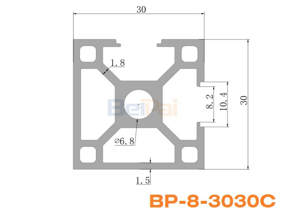 工业铝型材3030C两面封铝型材是一种广泛应用于自动化设备、机械框架、输送线系统及各类工业结构搭建中的高性能结构材料。其截面尺寸为30mm×30mm,代号“3030C”中的“C”通常表示该型号具备特定的槽口结构或加强设计,适用于更高强度和精度要求的连接场景。两面封铝型材指在型材的两个相对侧面采用封闭式结构设计,有效提升整体刚性和抗扭性能,同时增强外观整洁度与防护等级。