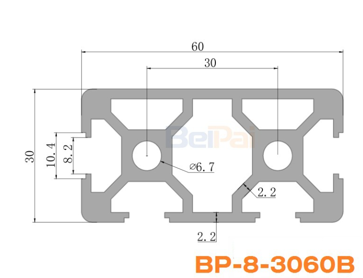 工业铝型材3060B是一种广泛应用于现代工业制造与自动化设备中的结构材料,以其高强度、轻量化、耐腐蚀及可重复组装等优势,成为机械设备框架、工作台、输送线、防护围栏等系统的理想选择。3060B型材截面尺寸为30mm×60mm,采用高品质6063-T5铝合金制造,具备优异的机械性能和表面处理适应性,支持阳极氧化、喷砂、喷涂等多种表面工艺,满足不同工业环境的美观与防护需求。